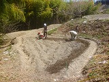 その合間に、畑のレイアウトを考えながら定植用の畝立て作業を行ないます。